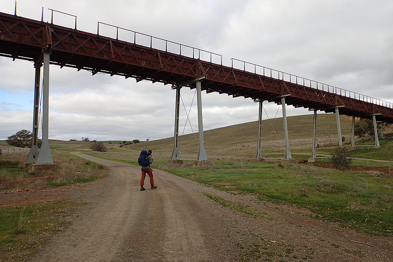 A short walk into Spalding today, we continued along the old canal. We love this route. There is something about old infrustructure like this that just adds interest. Right before the town there was a large area in a paddock given over to lambing and our route went right through it. The lambs were teeny, they might have been born that day, so we stuck to the road to avoid causing chaos. They are really the cutest things to look at. Some of the babies looked pink through their fine wool. Massive ears compared to their bodies! We sat at the same picnic shelter in Spalding we had sat at last year and bought some pies to eat from the general store. We collected a few parcels from the post office, one of which was a food parcel sent from Quorn. The general store at Spalding is not a reliable resupply. You might get away with it if you are on your own, but not if there are two of you. I had also ordered an ankle brace which would be my constant, and in the end very smelly, supportive friend. We walked out of Spalding along the old rail route and into the hills again. It was a pretty walk and we camped once more in the Linear Reserve under some trees. It was a short day but the weather was not great, very cold and windy. We put up the tent and a few minutes later, putting stuff inside you could see literally hundreds of teeny spiders making webs between the tent walls. Opportunism!
