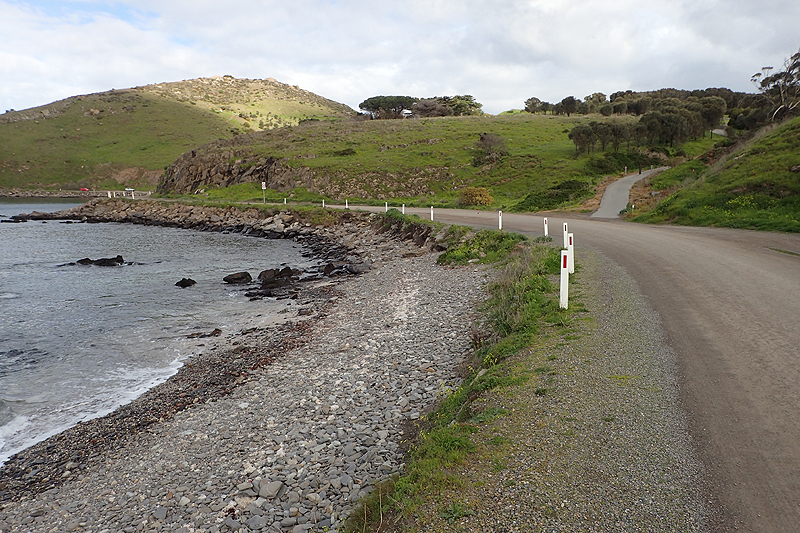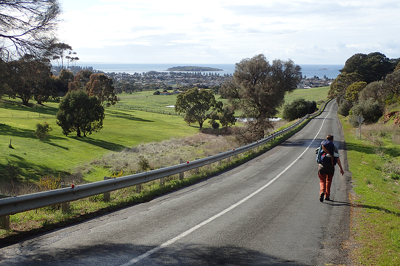 Pretty exciting to be making our way to Mount Compass as we would have a rest day and wash our clothes. Burra was a long, long way away on the shower/laundry scale! We enjoyed the walk today and came across two northbound thru hikers at different times. It was a hilly day with plenty of climbs and descents. Going into Mount Compass itself is not on the Heysen but you wouldn't be able to resupply otherwise so this seems to be a bit of an omission. We had to walk along the bitumen road quite a bit, going into and out of Mount Compass. The bit going out of town seemed to go quicker, but that could have been a result of us trying to beat the rain. The walk into the town was made more interesting by some type of aquatic plant living in the gravel on the road side that was a slippery as seaweed if you stood on it. It was like walking on ice! Driest state on the driest continent; my foot! We bought a lot at Mount Compass as we had a rest day at the campsite and did not want to walk the 3 km back into town. A few lovely locals offered to drive us where we needed to go and then the rain came down! It rained off and on all afternoon and the next day, our rest day.