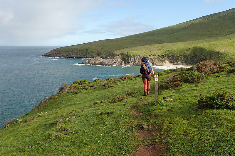Go-cart Track is the name of the track that we spent a lot of time walking on. My, did it go allllll the way up, and alllllll the way down. Repeat. Drove us crazy! Worth following this ridgeline for the amazing views though. It was such a clear morning, you could see the green farmland meet the sea. There was a great lookout at The Bluff which looked quite new. We camped just after Beetaloo walk-in site and a family of goats with teeny kids came to visit us.