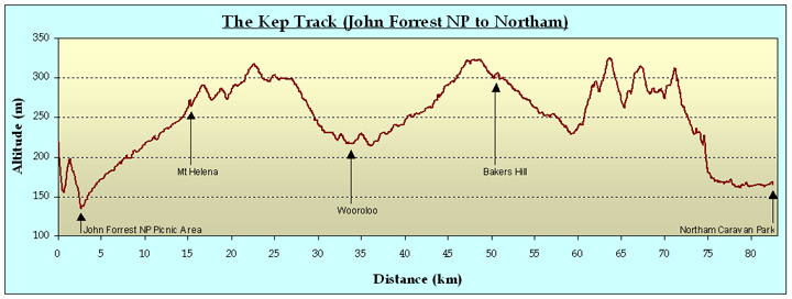 The Kep Track is a multi use path for hikers, mountain bikers and horse riders, running between Mundaring Weir and Northam. It covers a distance of approximately 75 km and generally follows an old rail reserve which means it has a gentle gradient.