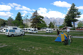 We set the alarm as we had to catch the shuttle from Riccarton Mall at 7.30 am. We were up at 6 am and quickly packed in silence - the park has mainly permanents living in caravans - so didn't want to disturb. Everyone was so friendly. The park was just installing electronic entry gates and so on - so it's very safe and secure. We were a little confused about whether the Mall meant where Countdown was or further on at the Westfield's Mall. We ended up going to the Westfield's which was the right place. It was only 2 km's away. We had chosen this campsite because of it's proximity to the shuttle stop. The name of the company is Atomic Shuttles which we had had great service from a few years earlier. The cost of transport for us and two bikes and luggage was $90 from Christchurch to Queenstown (490 km) - what a bargain! The trip itself was beautiful - we had planned our route initially to cycle back to Christchurch, so were very interested in the route the bus took through Geraldine, Fairlie, Lake Tekapo, Twizel, Omarama. Very beautiful scenery - the lakes an amazing glacial blue. We did note that the shoulders were narrow to non-existent and that the road was often very undulating. It is always fun to spot the campsite that you had planned to use for the return journey. It was a beautiful day's travel - lovely weather.