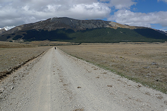 That exciting moment had come - the real start of the journey! We quickly changed and hopped on the bikes. We had chosen this road to South Mavora Lakes and then on to Te Anau as a simpler and more adventurous way to travel south to the Milford Sound and Fiord land Region. We read about the route in our Lonely Planet Cycling New Zealand Book. It was without a doubt the most beautiful day's riding on the trip. The dirt road takes a slight uphill route and then descends down to the lakes. We set off at 11.15 am. The scenery? Spectacular - great road surface, sheep dotting brilliant green hillside. Sapphire blue lake to see here and there as the track follows the lake at first.