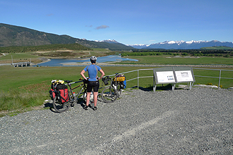 Cold start to the day. Didn't inspire actually getting out of bed. Ended up leaving at 8.20 am. It was a fantastic day's riding - a beautiful route. We were quite disappointed that we had not gone on the day before and had a night at Lake Manapouri - it would just have been a 20 km ride - very picturesque. We stopped at a point to do a geocache - and low and behold there was a picnic table right there! The ride from Te Anau to Lake Manapouri was lovely - all along the lake edges. The view over the Waiau River was very interesting - water is diverted to a hydro-electric power scheme.