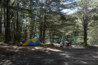 The Blackmount Hill at 48.28 km is about a 2 km steep climb. Lovely descent and then the turn off to Lake Manawoi at 57 km. It was a 15 km ride to the lake - undulating with a few climbs. 8km of good gravel road to end. The campsite was stunning - there were a couple of fishing boats out on the water. Have never seen sandflies like this! We bathed in the lake. We lay around and read. We went into the tent to escape the sandflies and it sounded like it was raining -there were millions all over the tent jumping up and down! The road we would take from Te Anau and eventually ending in Dunedin was the Southern Scenic Route - taking you from Fiord Land down south and through the Catlins area.