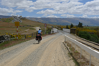 The campsite at Ranfurley was also nice. Quite hot there. We met two German cycle tourists there. We were thinking of cutting across via a dirt road to the main route to Omarama, but they soon put us off that idea - this was the route they had taken to Ranfurley and was unrideable in sections.