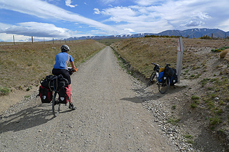 My goodness, we woke up to the head wind from hell. What could we do but set off. It was terrible- really bad. Right into the teeth of it. We weren't hitting 10 km per hour along the dead flat. We stopped for a rest at the first settlement we came across. When we met the German guys later at Omakau they said they had a beer and sleep there!
