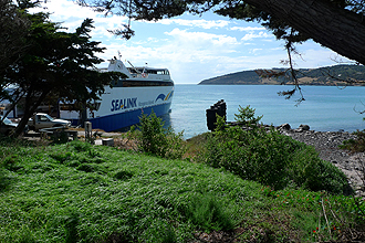 When we had first planned a tour in Adelaide, we had thought to cycle the 200-odd kms through the Barossa Valley to Cape Jervis ferry terminal, but were we please we changed our plans! The road is narrow, undulating and has no shoulder (it would not have been fun having a bus drive past you) and drops off steeply to farms or river valleys far below. It is very picturesque though and we really appreciated being in the bus and not on our bikes! As we had 2 weeks for the trip and we thought that there was a fair amount to see on the Island, we decided it was better use of our time to spend all of it on the island, instead of getting there and back.