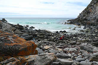 We set off to KI Caravan Park and were somewhat dreading the gravel road section again (now uphill), but actually it was not too bad - we set off accompanied by a group of bounding kangaroos that moved along with us - it was quite exciting - always worth getting an early start! After the gravel road we took the West End Highway turnoff towards Remarkable Rocks and then the South Coast Road. The day's ride was only 53km and a fabulous gradient - gently downhill so you could push your biggest gear with ease. We had been hoping to spend more time camping at bush camps in the Ravine Des Casoars Wilderness area/ Flinders Chase National Park but the area was still recovering after bush fires, so we were unable to enter. The caravan park was good though - we saw our first koala's in the wild. We had two days off here as the first day it was rainy and unpleasant and we wanted to go to see Remarkable Rocks and the Admiral's Arch - which was a 25km cycle away so you didn't want to rush out there in bad weather just to turn around and come back. So we spent the day lazing around and set off the next day in a howling wind to have a look. There is also a lovely light house at Cape de Couedic - right at Admiral's Arch. Also a fabulous seal colony there and as we were the first visitors of the day we completely upset them and they flopped and grunted away. The ride to Remarkable Rocks was quite undulating but enjoyable. Definitely worth the trouble. The views of the coastline were also beautiful. We set off the next day for Vivonne Bay - another short ride away.