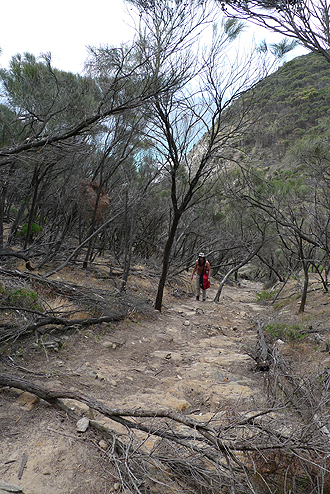 The campsite is remote, surrounded by huge Blackboys and eucalypts. Perched on the edge of a cliff you felt like you were on top of the world. Our "bath" was the sea at the base of the cliff - a VERY STEEP climb down and a slog back up but worth it. The name Harvey's Return comes from the supply point that was created on the beach. Boats would bring supplies for the lighthouse station at Cape Borda and the remains of the horse-drawn winch trackway (and landing site) used to pull the supplies up the steep path. We camped there for two nights and it was amusing to watch tourists arrive to do the Harvey's Return Hike to the beach and for us that was just a trip to our ablutions! On our day off we walked to the Cape Borda lighthouse along the 9km long Return Road Hike - very quaint and saw the cottages for hire - the island has renovated the old light keeper cottages and they seem very reasonably priced and a nice place to stay. The lighthouse keeper's graveyard was also very interesting - you can only imagine the tough quality that a man would have to posses to live in such a place and many had families that came along too. It was so nice and peaceful having the entire lighthouse area to ourselves.